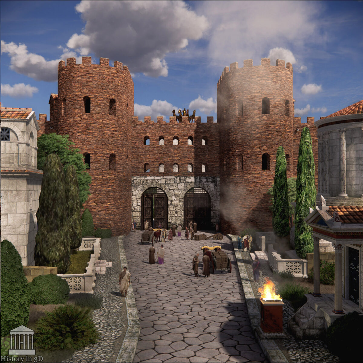 The video shows the very first version of the gate, shortly after the construction of the walls under Aurelian and Probus. However, in the future, I will replace it with a more accurate reconstruction for the 4th century.