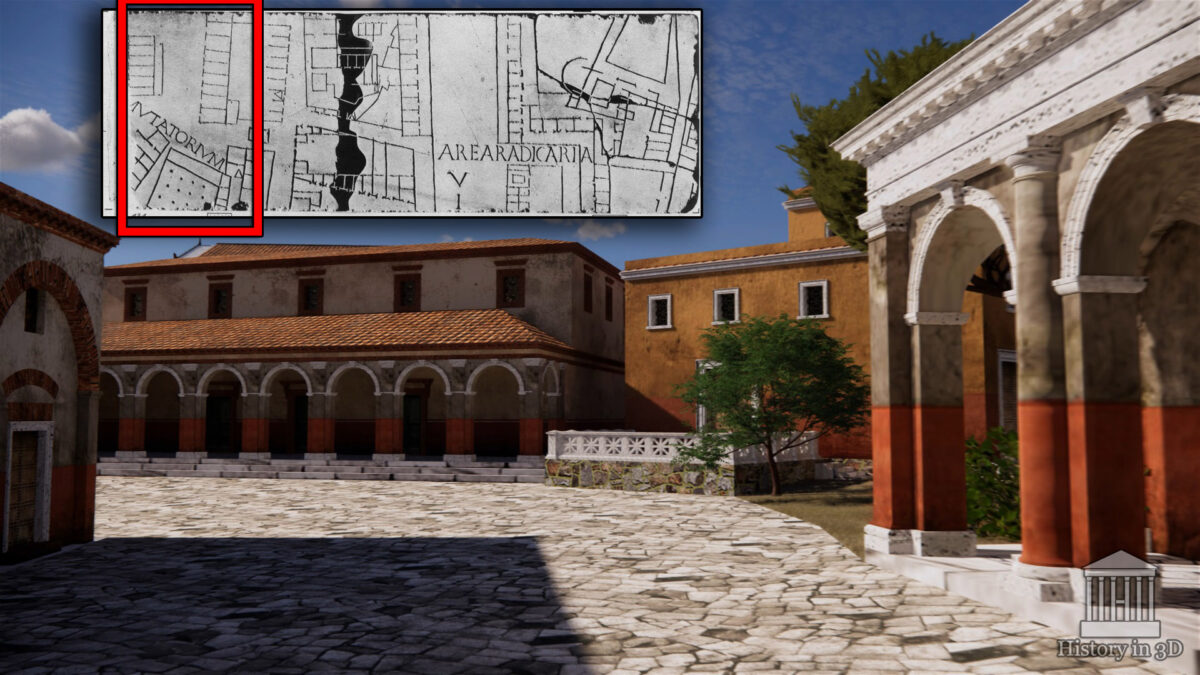 The site, whose location and layout are reconstructed with remarkable precision from the Forma Urbis (Marble Plan of Rome), is clearly visible on the best-preserved (almost complete) slab of the plan. Apparently, this was the site of a complex of utility and infrastructure buildings, where, among other things, transport used outside Rome was replaced by transport permitted within the City limits. As is well known, within Rome, there were restrictions on carts, chariots, horseback riding, and other means of transportation.