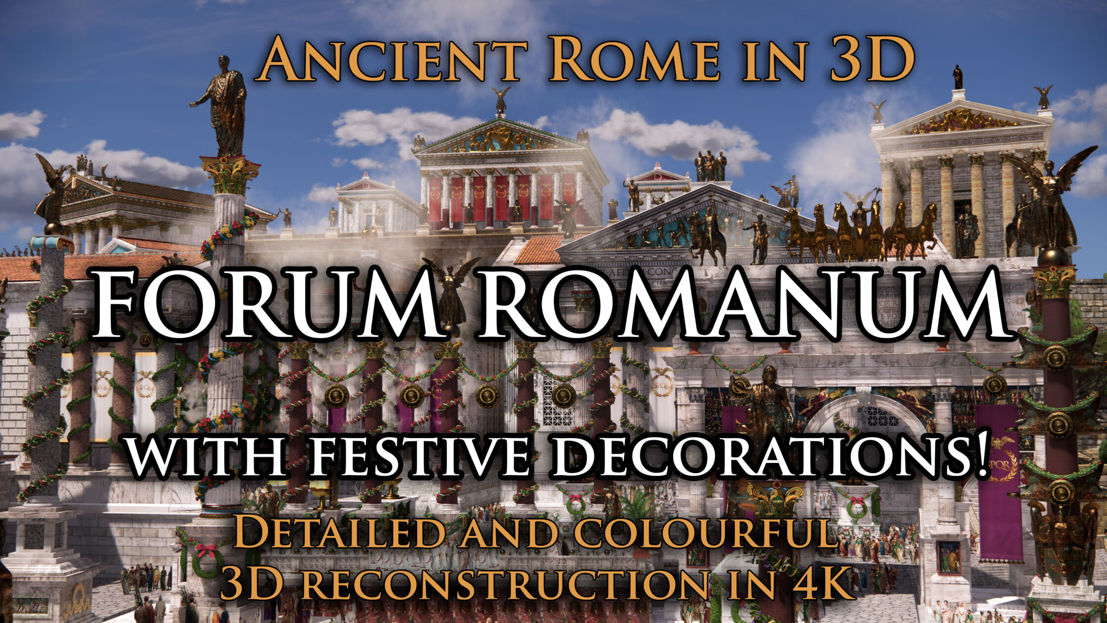 In anticipation of the Christmas and New Year holidays, I released a new video on YouTube showing what the Forum Romanum might have looked like, decorated for the holidays. I already created the first version of this festive Forum a year ago; this is an expanded version, including the Capitoline Hill, and rendered in 4K.